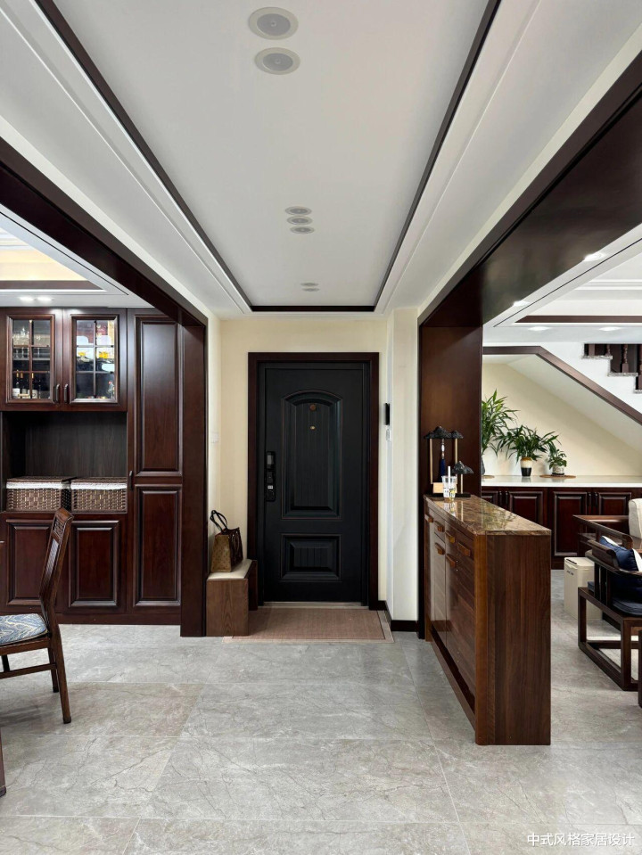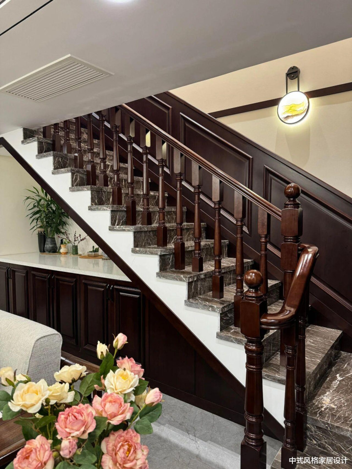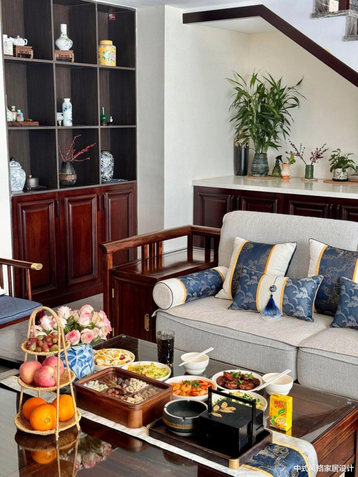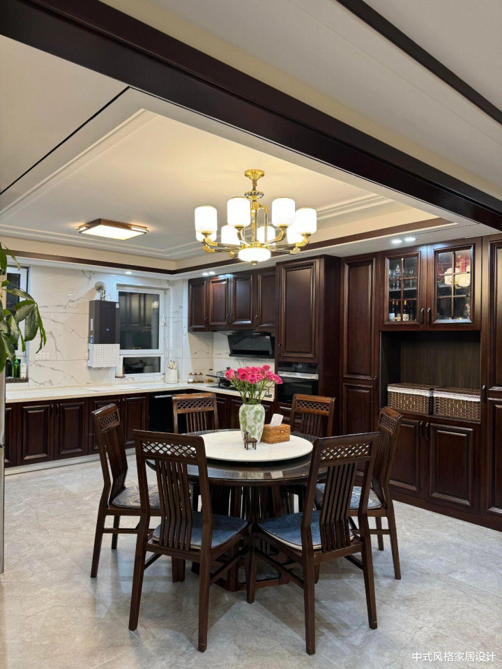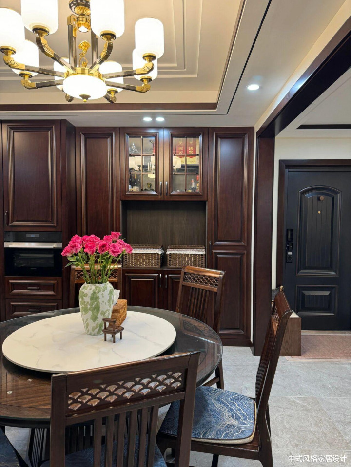 新中式讲究“隔而不断”的空间意境。我在224平的空间里,巧妙运用了月洞门、屏风、博古架等元素划分功能区域。客厅与茶室之间,一扇精致的回纹图案屏风既保持了空间的独立性,又不完全封闭视线,营造出通透流畅的视觉效果。