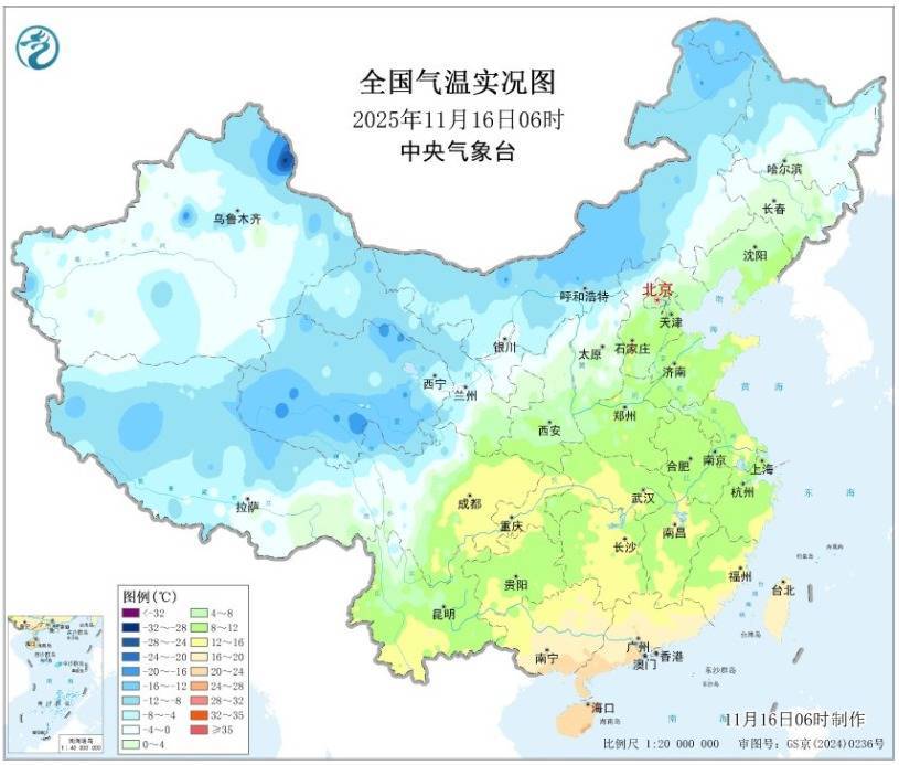 这个周末,北方大部率先领略了下半年首场寒潮的威力。今天(11月16日)清晨,呼和浩特气温首次跌破零下10℃,创下半年来新低;兰州和西宁也双双刷新下半年来气温新低。